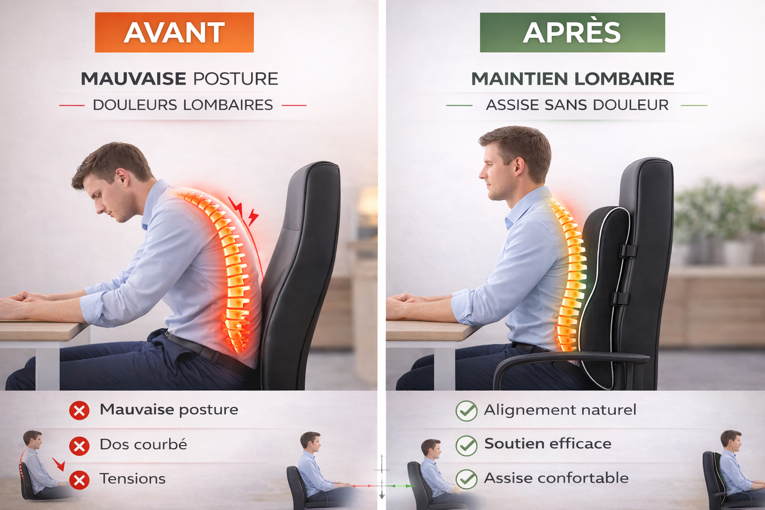 Le coussin de soutien lombaire SwissConfort a été conçu pour vous offrir un confort exceptionnel et un maintien optimal du dos, que ce soit au bureau, à la maison ou en voiture. Sa forme ergonomique épouse parfaitement la courbure naturelle de la colonne vertébrale et aide à maintenir une posture droite tout en réduisant les tensions dans le bas du dos.